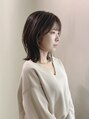 鎖骨上ぐらいの長さで切ったやや前下がりのボブオーバーにレイヤーを入れています。