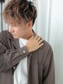 サイドとバックに刈り上げたマッシュスタイル。トップを長く残してゆるいツイストスパイラルパーマで軽さと柔らかさを備えたワイルドセクシーなフォルムに。好感度の高い黒髪ショートから少しイメチェンしたい方にオススメ。