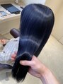 ブリーチ1回で出来るブルーブラック。色落ちアッシュ系なので、1ヶ月半は楽しめるカラーです。ベースブリーチにはこだわりがございますので、是非ご指名下さい。