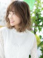 【スタイルは★ブックマーク★が便利】大人かわいいくせ毛風ゆるふわミディ。ナチュラルボブやフェミニンボブ、大人ボブや前下がりボブからの伸ばしかけに◎斜めバングや厚めバング、シースルーバングで目力UP。前下がりで小顔。(メイク担当:川口店 岩淵)