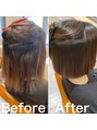 クセ、うねりや広がりをしっかり伸ばしながら、極潤トリートメントで補修、保湿していきます。