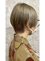 ダブルカラーで透明感グレージュカラー。ブリーチ1回 ケアブリーチ、カラー1回。カットは耳下のショート丸みも出してます。ケアブリーチはファイバープレックスブリーチ使用でダメージ軽減してます。