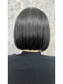 黒髪前下がりボブです。重めのラインで毛量調整でボリュームダウン。レイヤーはなしの切りっぱなしボブ。