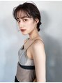 後毛を緩く出してラフなお団子に。ヘアとファッションをマッチさせたお洒落でラフなstyle。【気に入ったスタイルは「ブックマークする」ボタンを押して、ご来店時ご提示ください】青髪,結べるボブ,韓国ヘアー,顔周りレイヤー,ホワイトベージュ,ウルフショート