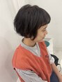 前髪が短いショートヘア。前下がりぎみでクセを生かして毛束で遊び感出してます。秋冬仕様の栗色で落ち着いた感じで女性らしい柔らかさをプラス♪