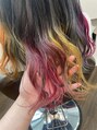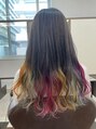 中間から毛先を一度ブリーチをしています!6色ほど使っていますが、何色を入れたいかはご相談で決められます!特殊カラーになるので、予約する際は一度お電話頂くか、メモ欄に記入していただくとスムーズにご案内できます◎