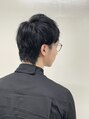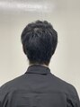 サイドはツーブロを入れすっきりさせつつ、トップはマッシュベースで切り、後ろは長さをあまり変えずウルフぽくなるようにしました。