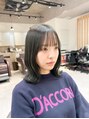 前髪は目にぎりぎりの長さでつくり、前髪からサイドバング繋がるようにし耳にかけても小顔効果が出ます。長さは顎ラインでカットしました。カラーはオリーブベージュでやわらかい質感をより強調してます。