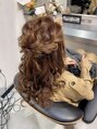 ルーズなハーフアップです。耳上の髪を残すことで巻き髪の部分が増えるので更にふわっと感が増すハーフアップです。