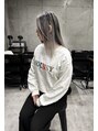 ツーブロックのショートボブデザインに、ブラックとプラチナシルバーベージュのツートンのデザインカラーを施したスタイルです★インナーとオーバーセクションでのコントラストが美しいエッジーでカジュアルなテイストのデザインです★