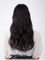 黒髪ベースにアッシュのポイントカラーがおしゃれなロングヘア。頬ラインからゆるやかに波打つカールをつければ、思わず触りたくなるような柔らかな質感に。前髪はシースルーバングで抜け感を演出して。
