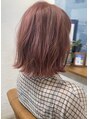 切りっぱなしボブのピンク系カラー