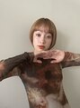 ブリーチ一回から可能な暖かみのあるベージュです*外国人の地毛のようなカラー♪短めのシースルーぱっつん前髪とショートボブの相性◎