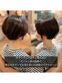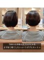 ボブスタイルをより短く軽くしたショートボブにカットしました。スタイリングは耳掛けする事により、よりスッキリとしたショートになります。カラーリングは少し明るめのアッシュ系の色味で染め、明るめカラーでも落ち着いた印象のスタイルへに。