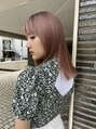 鎖骨下の切りっぱなしラインに、顔まわりを包むようなマッシュレイヤーを入れてカット。カラーベースはブリーチ2回、ペールトーンのピンクカラーを施して柔らかいカラーに仕上げています。
