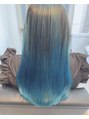 もともとバレイヤージュをされていました!今回水色にしたいという事で、アクセントターコイズブルーを明るくなっているところ全体に入れました^o^根元は地毛の黒さなのでターコイズブルーととてもマッチしていますね♪