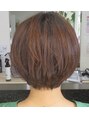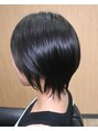 毛量も多く癖もあるので乾かすと広がってしまい短くできるか迷っていました。ステップボーンカットで丸みとスタイリングしやすい毛量にしました。