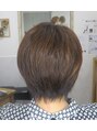 毛量も多く髪質もしっかりしていて癖もあるのでかなり膨らみやすい髪質です。以前ショートにするとカナル膨らんでしまいスタイリングに困ってしまったそうです。今回復元ケアとステップボーンカットでおさまりの良いショートスタイルにしました。