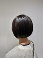 カラーは7レベルのアッシュ系ショートから伸ばし中なので襟足をカットしてレイヤーをなくしてミニボブにしました。