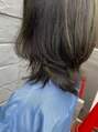 ベースは元々の地毛のままポイントとしてハイライトでブリーチしオンカラーに緑をいれてます!カットも襟足を長めにしレイヤーをいれた少し個性派なスタイルになってます♪