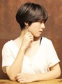 柔らかく丸みを帯びたショートヘアです。襟足はタイトにカットし、後頭部とのメリハリをつけ綺麗なフォルムに仕上げます。ストレートですがカットで柔らかさを出しています。
