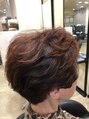 明るめのブラウンヘアマニキュアです。 シンプルなショートカットです。