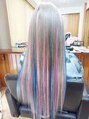 シルバーのベースに青、薄ピンク、濃いピンクのメッシュも入っています
