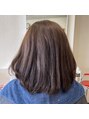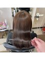 硬くゴワつく髪質の癖は、質感も合わさり横に大きく膨らみやすいです。髪表面が荒れているのが原因ですが、縮毛矯正で表面の歪みを補正しながら癖を伸ばすことで、まとまりも質感もナチュラルなものとなり、柔らかく艶もある仕上がりになります。