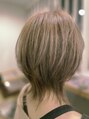 重めのベースを維持したレイヤースタイルです。表面ににみレイヤーを入れているので巻きやすく、ストレートでもまとまりやすい構造になっています。カラーはカーキアッシュで程よい透明感を表現しました
