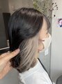 コントラスト強めのインナーカラー!インナーは2ブリーチしており、アウターはグレー強めのダークトーンにし、デザイン性の高いカラーにしています。