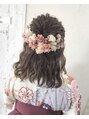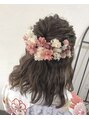 ハーフアップ波ウェーブ卒業式ヘアドライフラワーヘアアレンジ