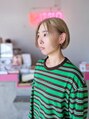ブリーチ後に、艶を出し、黄ばみを取る程度に軽くオンカラー。刈り上げる寸前のミニミニボブにブロンドカラーが、スタイリング簡単、お手入れ楽チン!!
