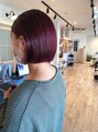 ブリーチしている髪にレッドバイオレットをオンしたスタイルです!カットはミニボブ。
