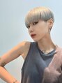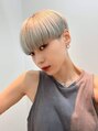 根元、刈り上げ部分は地毛の色毛先は3回ブリーチをして、淡い水色でくすませてツートンカラーにしています。周りは刈り上げで少しモードな韓国マッシュです。