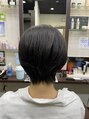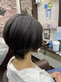 スッキリ軽めのショートヘアー黒髪でも軽く見えるように透け感が出るようなスタイルに。ショートヘアー/レイヤー/トリートメント/縮毛矯正/女性カット/学生カット