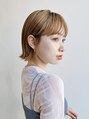顎くらいの大人ショート、ミニボブ。オレンジベージュカラーで、透明感と柔らかい印象になれます。オイルバームを髪全体に馴染ませるだけのツヤ髪になれる簡単スタイリング。