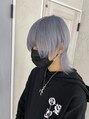 ブリーチ3回でしっかり抜いてクリアなブルーをオンカラー!色落ちはシルバーになるのでおすすめ☆