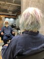 透明感のある金髪に、淡いピンクとミントブルーをトッピング。