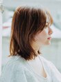 シースルーバングヘーゼルブラウンフェミニンロングボブ 祐天寺