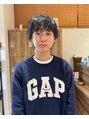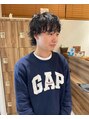 メンズのウルフショートパーマ。襟足はあえて外ハネになるように。トップは無造作に動かせるようにこだわったパーマデザインです。
