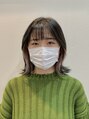 ホワイトベージュのイヤリングカラー全体はブリーチなしのブルーブラックでコントラストがきれいなスタイルです。