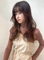 ロングヘア ココアベージュ 顔まわりレイヤー 小顔バング