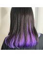 インナーのみブリーチ1回後、パープルカラーにしました◎メニューにお悩みの方は“フリークーポン”ご利用ください!ハイトーン、インナーカラー、ブリーチカラー得意です!初めての方もご相談乗ります◎是非お任せください^