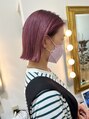- 切りっぱなしボブ/黒染め履歴あり/チェリーピンク/ピンクカラー/ダブルカラー/ケアブリーチ/ケアカラー