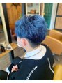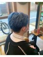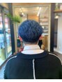 派手髪はお任せください!今回はメンズの刈り上げマッシュスタイルをシャドウルーツでブルーシルバーのグラデーションカラーに仕上げました♪根本をネイビー強めのブルーブラックから毛先はトーン高めのブルーにする事で癖毛を活かした立体感を演出!!