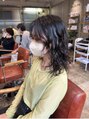 顔まわりは円錐、表面は中間巻きのスパイラルパーマ