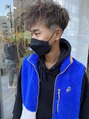前々回のツイストパーマ、前回のハイライト。今回はカット、カラーで紫味のあるブラウンに仕上げました。刈り上げは2mm~のグラデーションで骨格に合わせた高さ設定にしています。耳上からの前下がり感、かっこいいですね。