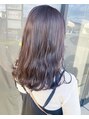 全体ラベンダーブラックにしイヤリングカラーをラベンダーに。色落ちも楽しめる透明感たっぷりのカラー◎髪質改善トリートメントで艶々に◎
