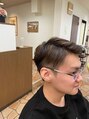 tツーブロックのショートヘアにハイライトをいれて、動きをプラスしました。