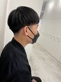 横は2ブロック、後ろは刈り上げグラデーションのマッシュショート。黒髪とのバランスも良く、ナチュラルテイストに仕上げてます。
